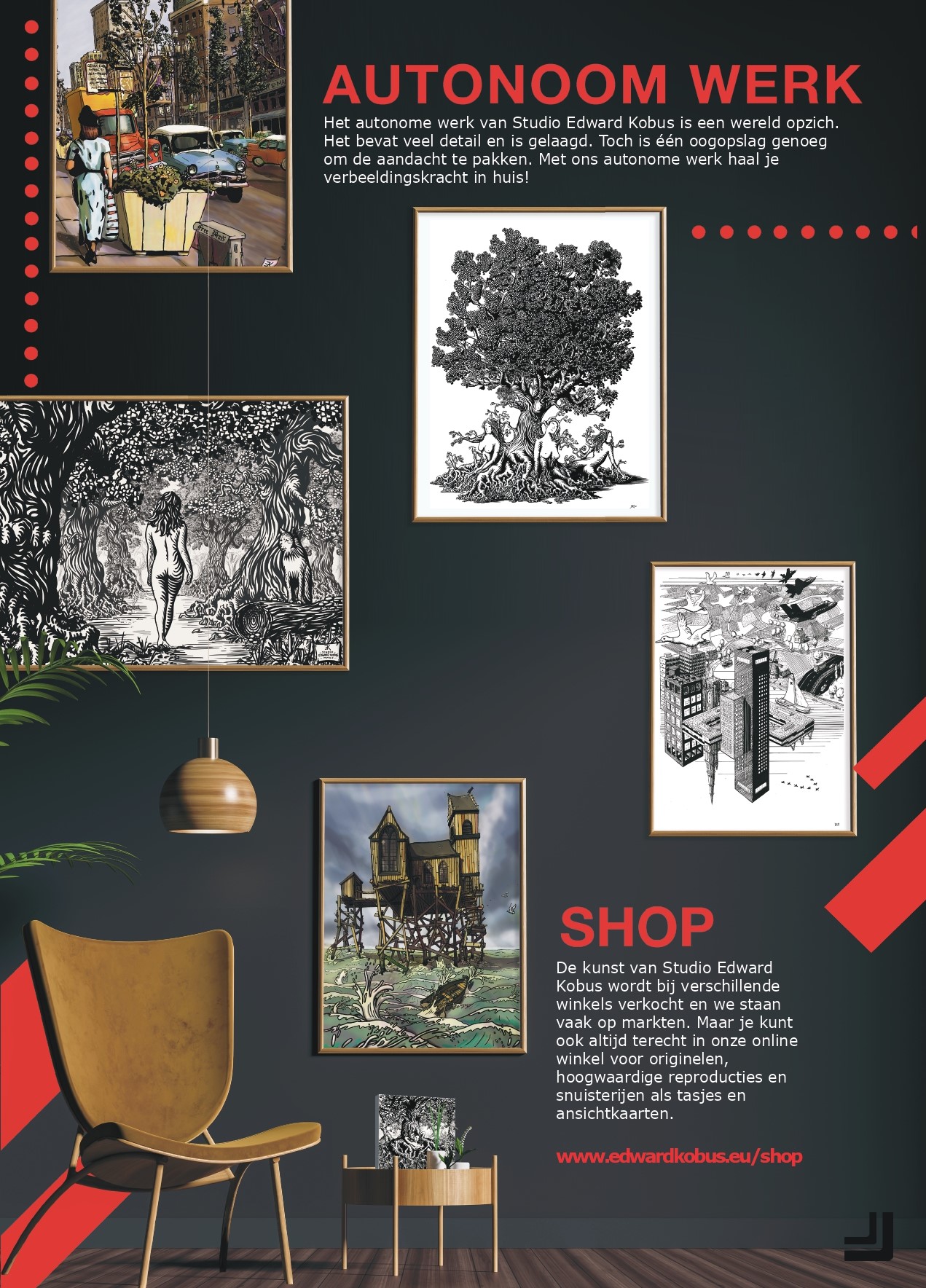 “Studio Edward Kobus had na vier jaar behoefte aan een nieuw ontwerp voor de bedrijfsfolder. Hier mocht ik, bij wijze van stage opdracht, mijn tanden in zetten. Een mooie en omvangrijke opdracht.