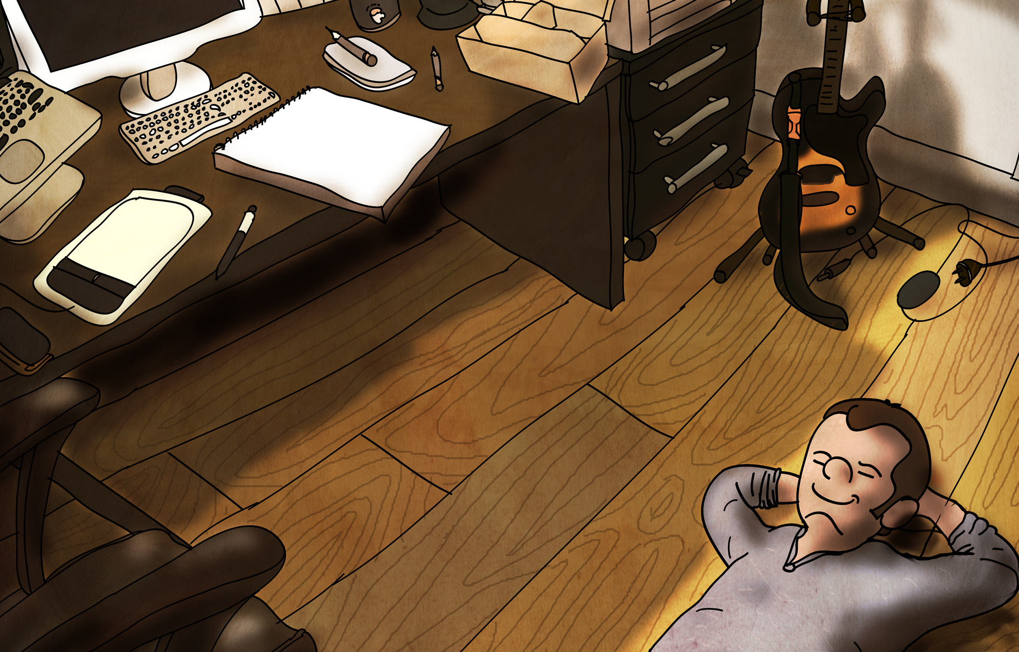 Voor mij werkt het als volgt: Ik moet lanterfanten. Voor me uit staren. Me vervelen. Als ik verstoken ben van Facebook, onbereikbaar via Whatsapp, dan ontstaat mijn beste werk.