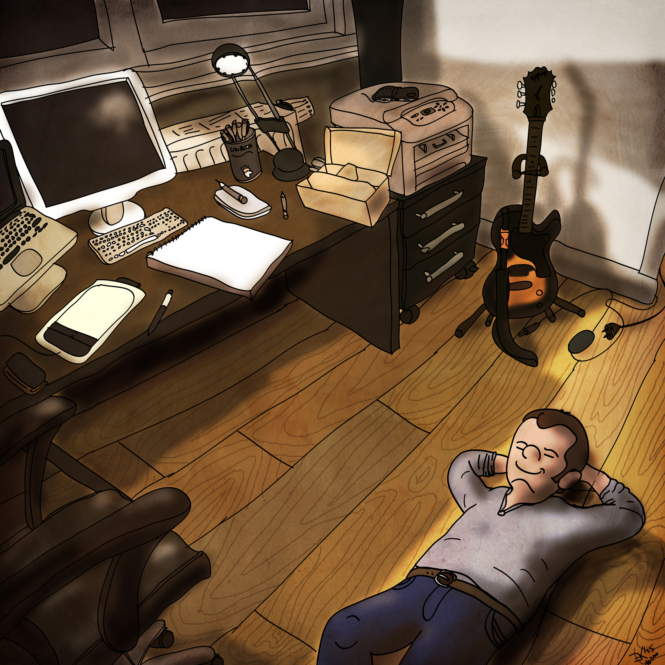 Oef, jawel. Daar was hij dan, de 300e tekening op rij. Om dat te vieren, wilde ik graag meer inzicht geven in het proces van hoe een tekening tot stand komt. Zie hier: De tekenaar, hard aan het werk in zijn natuurlijke habitat.