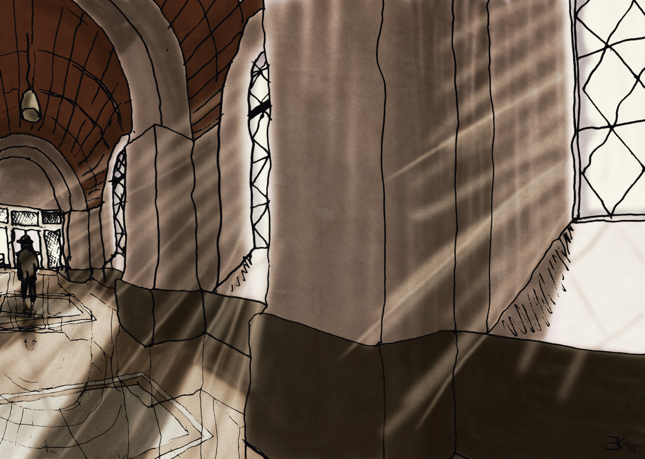 Meneer de Bruin wandelde door de lange gang en reflecteerde zichzelf en zijn omgeving.