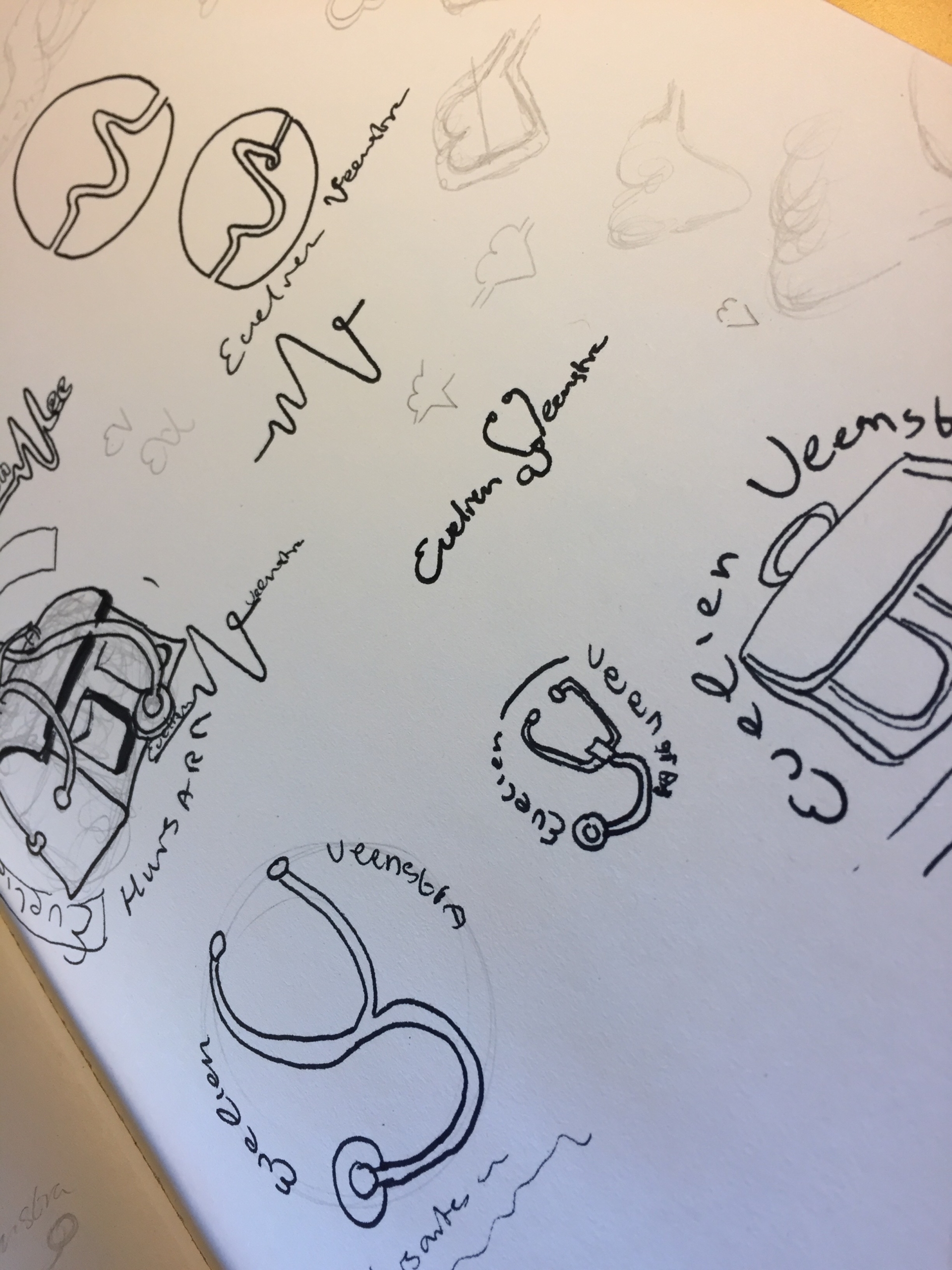 Uit die schetsen ontstaan uiteindelijk drie varianten, die zouden kunnen werken voor onze opdrachtgever. Die leggen we voor.