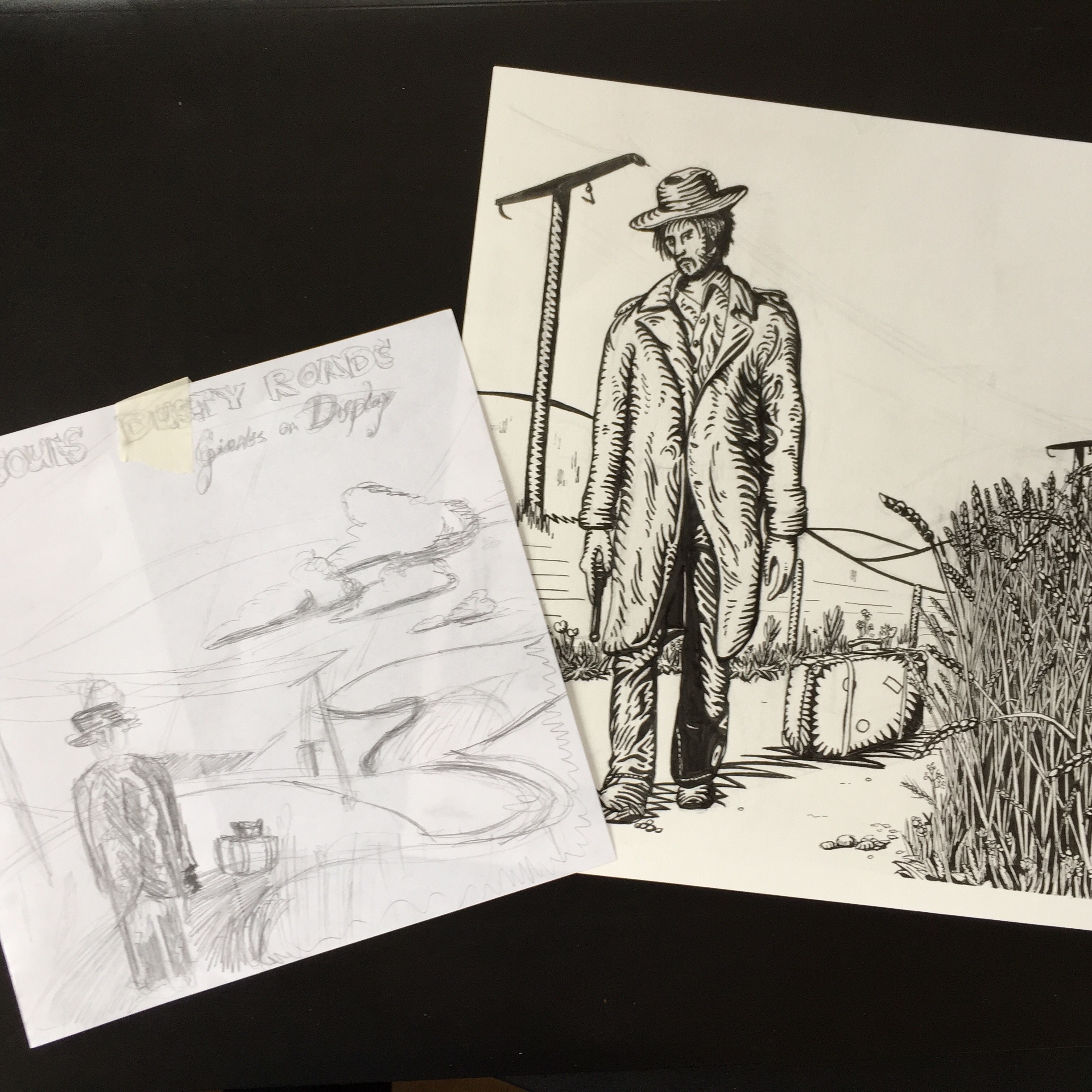 Giants on Display, een progrock band uit Hilversum, had kennis gemaakt met mijn werk, dankzij mijn #EdwardsDailyDrawing project. Vooral de verhalende kant van sommige van mijn werken viel in de smaak. En zo kon het zijn dat ik ineens een afspraak had staan voor de vervaardiging van wat in het Engels zo mooi heet: Album Art.