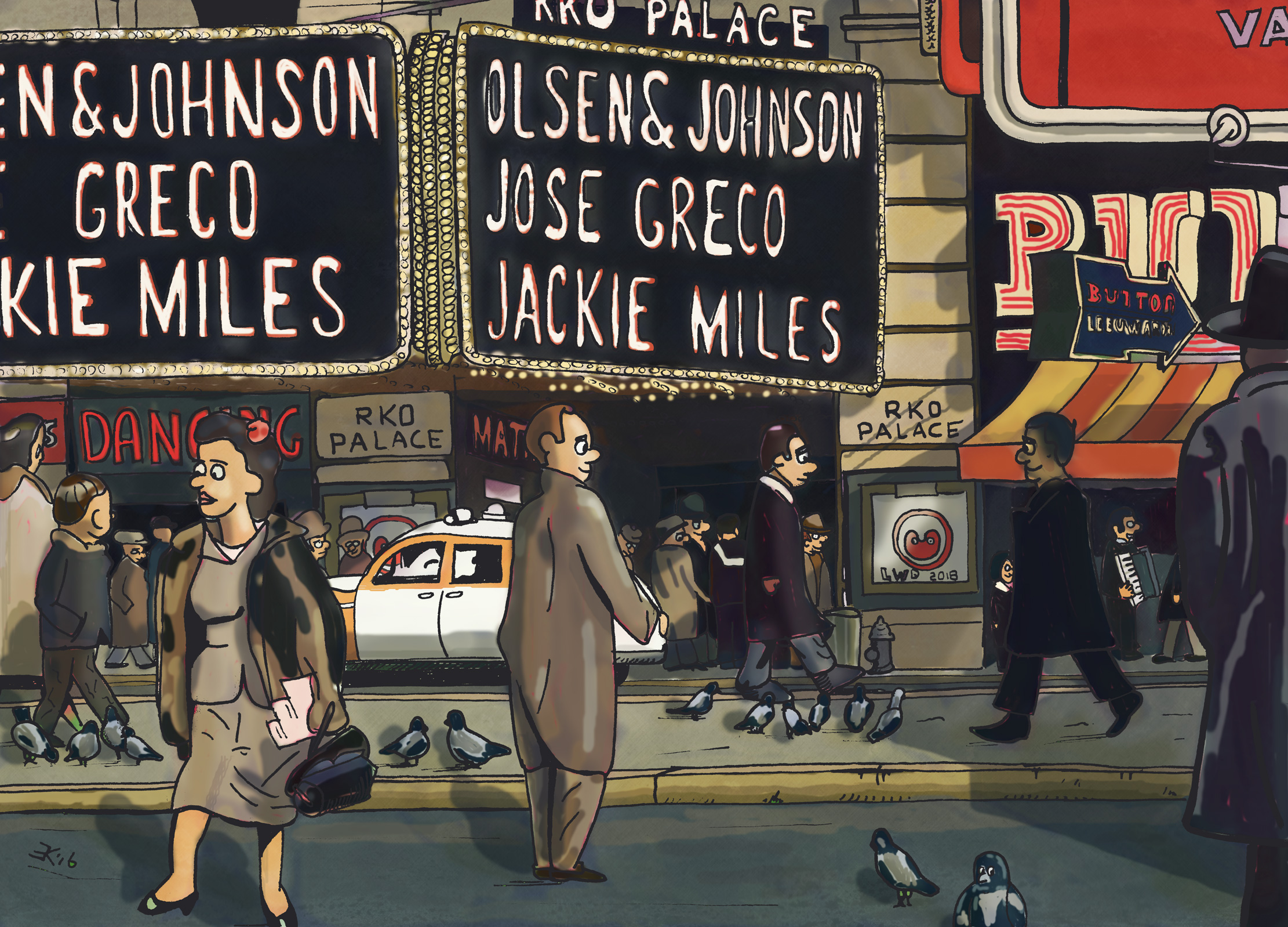 Een zeer tijdrovende tekening waarbij ik een stijl die ik heb ontwikkeld tijdens mijn #EdwardsDailyDrawing-project wat verder wilde uitdiepen. Op basis van een oude foto uit het New York van de jaren ’50 heb ik een wereld neergezet waarin van alles gebeurt. Met daarbij een knipoog naar Leeuwarden als Europese culturele hoofdstad in 2018.
