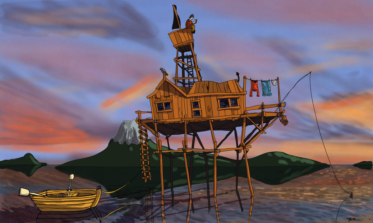 In deze voorstelling zie je een huis op palen dat even geimproviseerd als charmant lijkt.